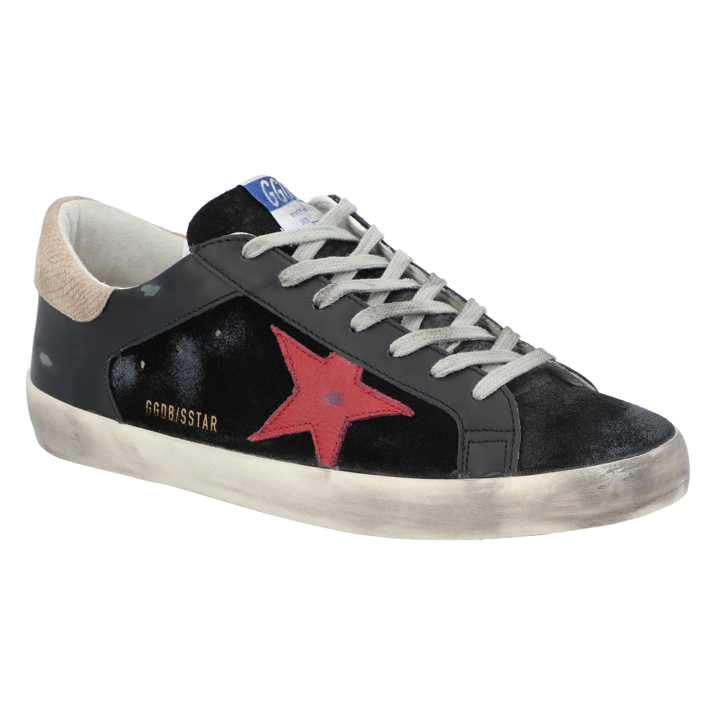 Super-Star in black nappa leather with a suede black star and heel tab